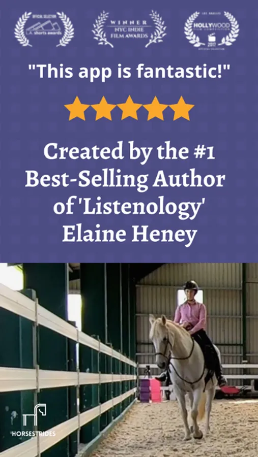 This equestrian app was designed in Ireland by the #1 best-selling author of 'Listenology', award-winning 'Listening to the Horse' documentary producer & international equestrian coach, Elaine Heney. Elaine has helped over 120,000+ horse owners in 113 countries to create inspiring relationships with their horses.