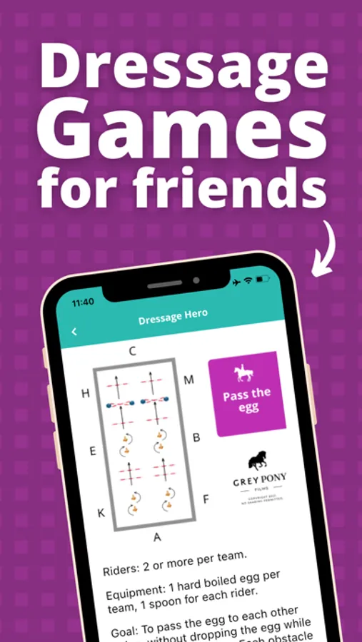 Transform your flatwork & dressage skills with the Dressage Hero app. Discover our library of dressage tests, creative equestrian horse riding games & competitions you can do in an arena, plus get packs of fun lessons you can do with a small group of horse owners & help you improve your skills. Finally a way to make dressage fun for horse & rider! Download this app for free today.