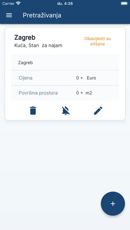 Aplikacija prati sve veće internetske stranice za nekretnine te vas odmah upozorava ako se odgovarajuća nekretnina pojavi na tržištu, bez obzira na to gdje je oglašena. Možete postaviti više obavijesti, tako da ako se pojavi nova nekretnina koja odgovara vašim kriterijima, možete prvi stupiti u kontakt s prodavateljem i osigurati da ne propustite svoj dom iz snova.
