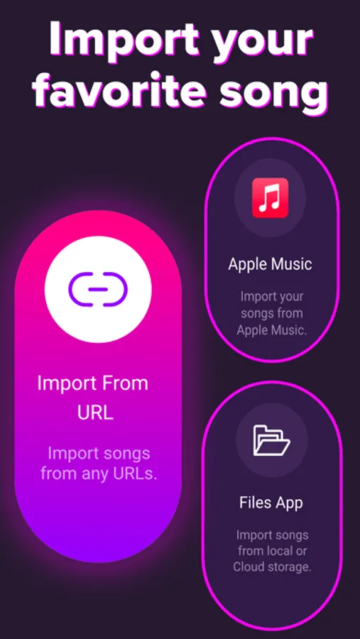 1. Import an Audio using the Cloud, a URL, Photo Library or Apple Music. (Mp3 or M4A)