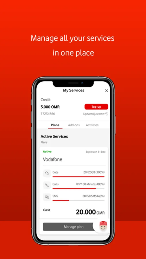 My Vodafone App gives you a fully digital experience where you can create your account, subscribe to your most suitable plan, and get your SIM delivered to your doorstep within 24 hours. Through My Vodafone App, you will be able to manage your entire account and carry out the following tasks: