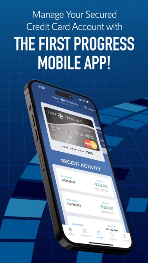 The First Progress App is available for First Progress, First Latitude, OakStone & Assent cardholders to easily manage their secured credit card accounts.