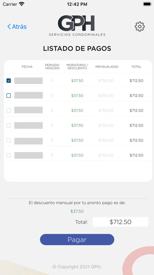 Aplicación para realizar los pagos para servicios de mantenimiento.
