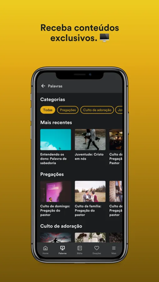 - Siga a agenda e fique por dentro de tudo que acontece na igreja, inscreva-se em eventos e tenha seus ingressos sempre com você.