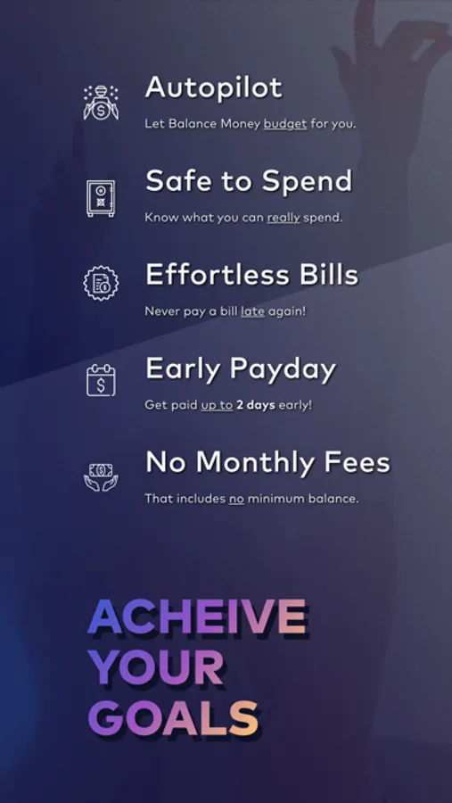 Balance Money® is a personalized-banking solution built to empower you, giving you more control of your finances. We automate everyday financial tasks, provide budgeting tools and give insights aimed at helping you achieve your financial goals. After all this app was built for YOU!