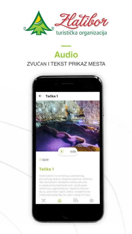 Aplikacija “Stopića pećina - audio vodič” će upotpuniti vaše iskustvo jedne od najuzbudljivijih atrakcija na Zlatiboru. Koristeći audio, foto i tekstualne formate uživaćete u šetnji kroz deset ključnih tačaka pećine.