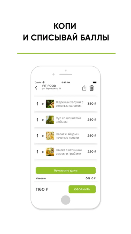 Заказывайте полезные блюда с доставкой или самовывозом в нашем приложении! Просто укажите время визита, и мы накроем стол или упакуем всё «с собой» к этому моменту.
