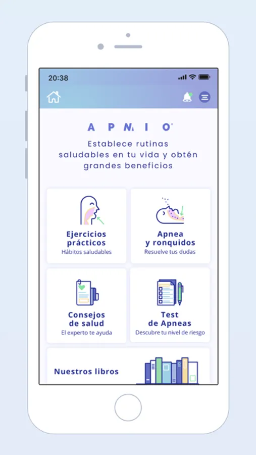 ¿Buscas una solución práctica para mejorar la calidad de tu sueño? APMIO es una aplicación donde los usuarios pueden acceder de forma gratuita a servicios informativos y de orientación sobre los problemas de sueño y la roncopatía, así como la posibilidad de realizar un test de riesgo de apnea online y recibir un diagnóstico y orientación especializada.