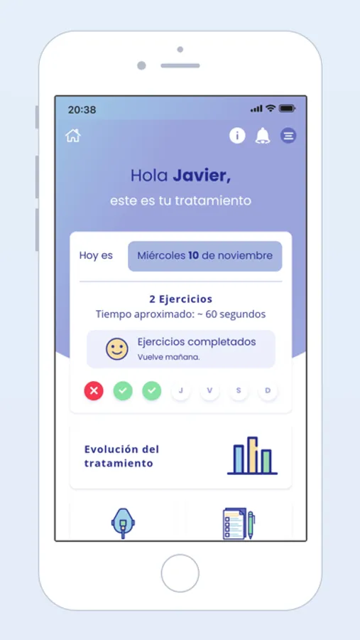 Y si eres paciente nuestro podrás llevar un control diario de tu tratamiento a través de la app. Tendrás acceso a información detallada, con una guía específica y personalizada, donde poder realizar tus ejercicios y seguir la evolución de tu tratamiento.