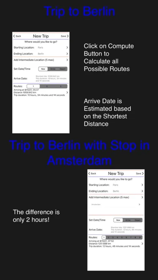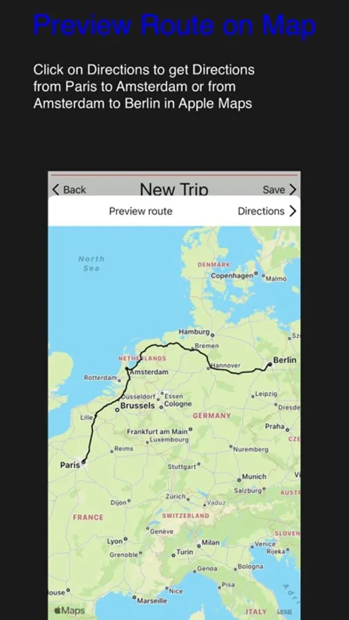 You can view each route on a map, and you can then get direction on an Apple map. Finally, you can save each trip for future reference.