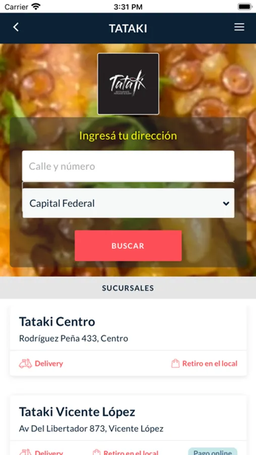 ¡Aplicación oficial de Tataki - Delivery & Takeaway!