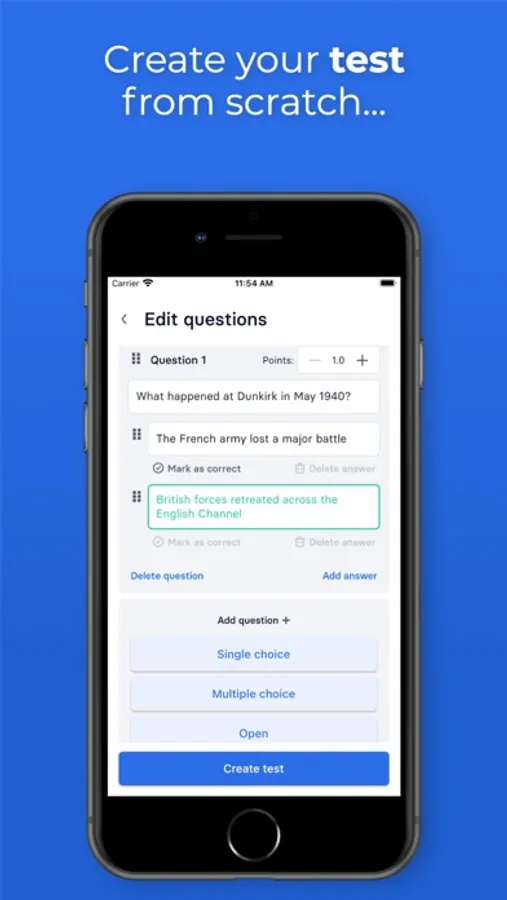 • Supports multiple choice and open questions