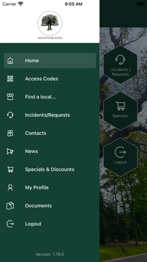 Burwood Resident's App for generation of access codes and access to estate news broadcasts.
