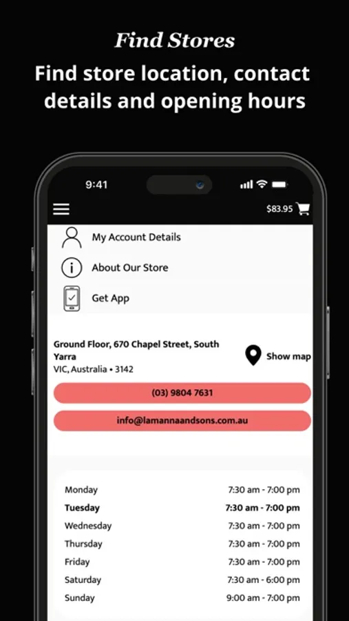 Once your order has been placed and confirmed ready, you can go to our La Manna & Sons app and let us know that you have arrived to make things quick and easy when you get in-store.