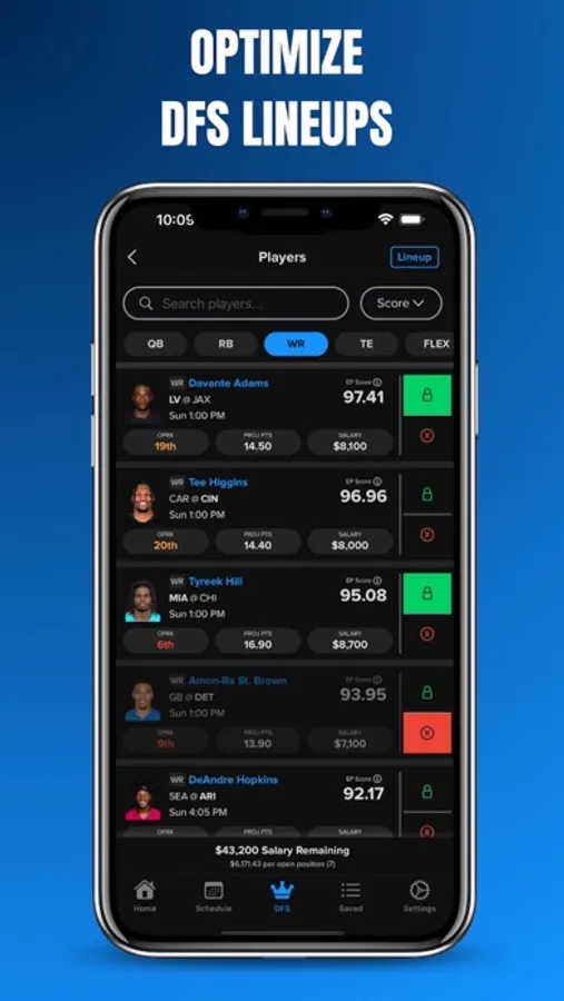 - Generate up to 150 DFS Lineups at a time