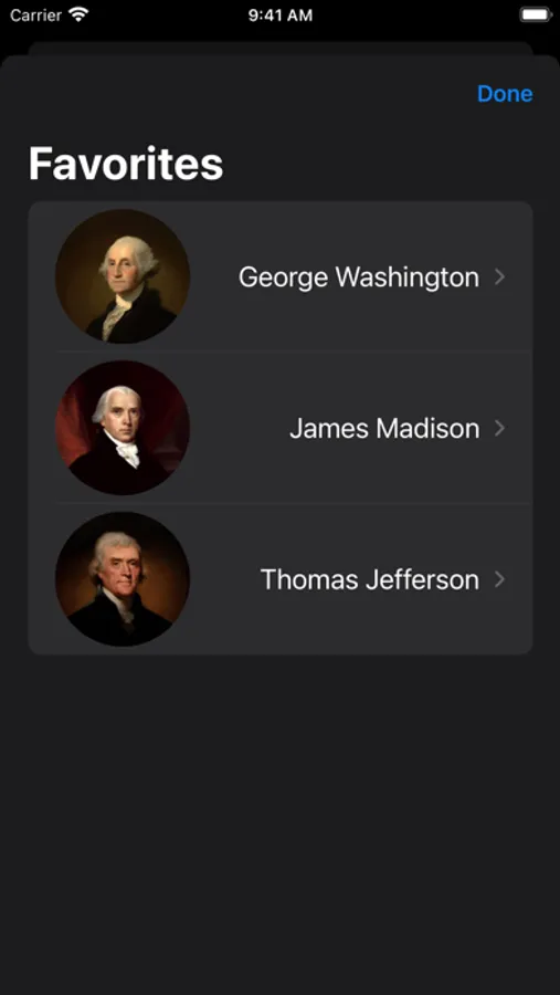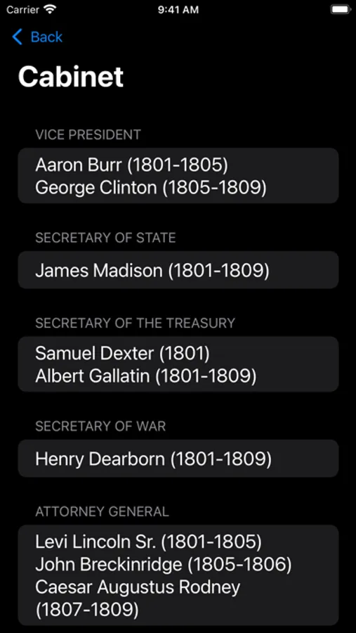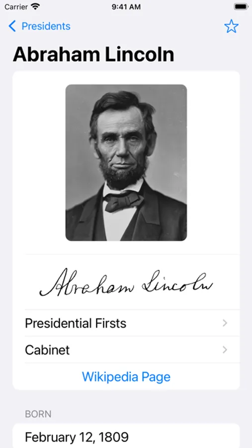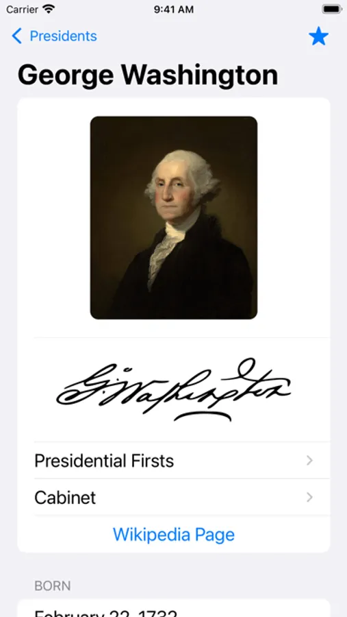 This is an app that allows you to view all of the Presidents of the United Stated and see lots of info about them.