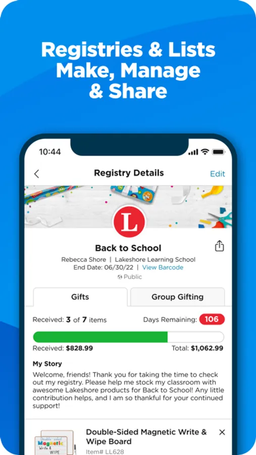- Manage registries and lists. Create, update and find other registries and lists from your phone.