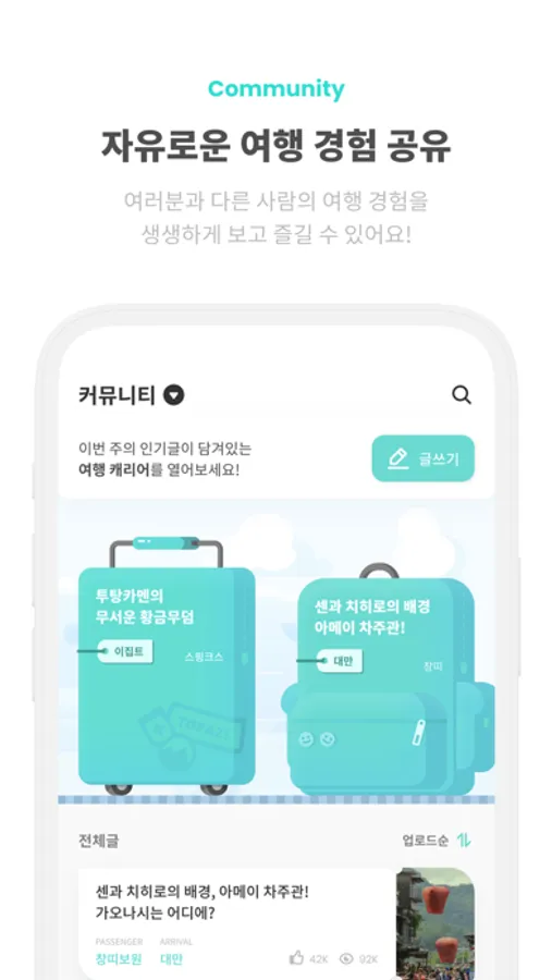 다양한 사람들의 여행경험을 한 곳에 모아놓은 커뮤니티에서 여러분만의 생생한 여행 이야기를