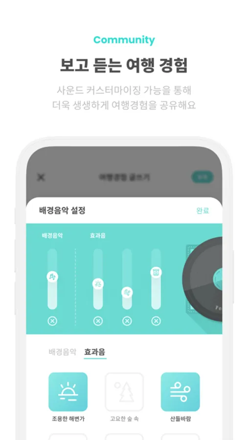 원하는 사진과 다양한 사운드 커스텀 기능으로 생생한 여행경험을 전달할 수 있어요!