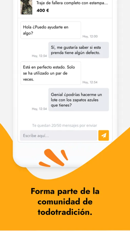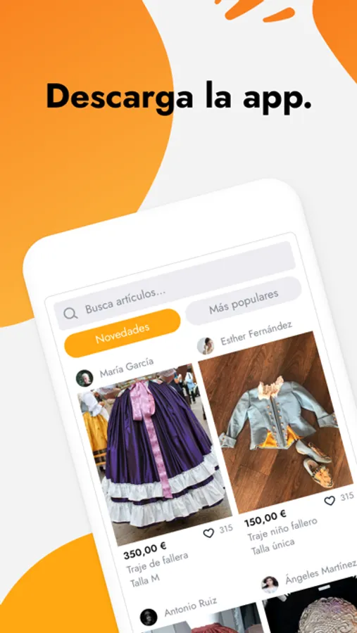 Descarga la app, regístrate y únete a la mayor comunidad de compraventa de trajes y complementos regionales. Vende aquellos que ya no usas, y también podrás encontrar una gran variedad de artículos que te ayudarán a iniciarte en el mundo fallero o te pondrá en tus manos una gran variedad de opciones entre las que elegir tus complementos perfectos.