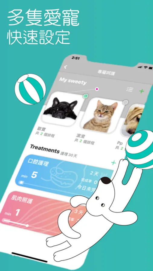 • APP智能設定可依照寵物品種, 年紀制定專屬保健規劃排程 。