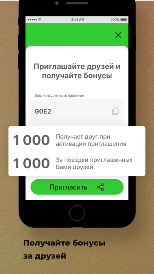 Приглашайте друзей в приложение и зарабатывайте бонусы с помощью реферальной системы. Оплачивайте ими и экономьте на поездках.