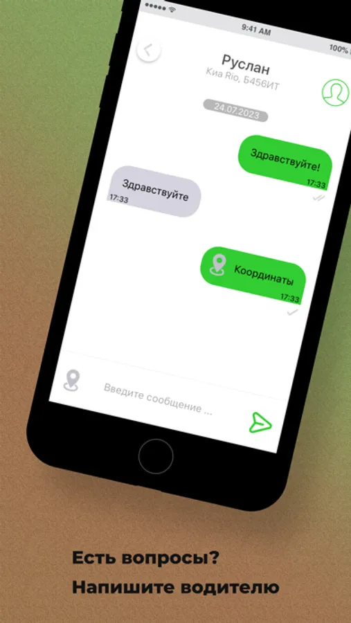 Спросите в чате приложения, где он находится, или отправьте ваши координаты с помощью одной кнопки.