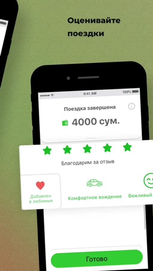 Поставьте оценку водителю, напишите отзыв или выберите реакцию из готовых шаблонов. Добавьте водителя в избранные, если понравилась поездка.