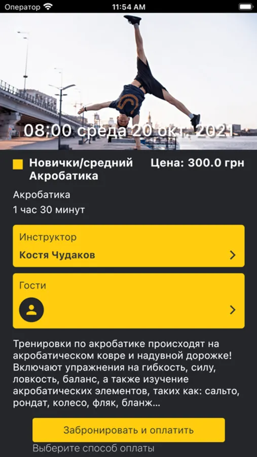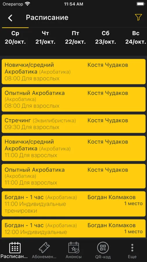 Регистрация в клубе, просмотр расписания и абонементов, запись на тренировки.