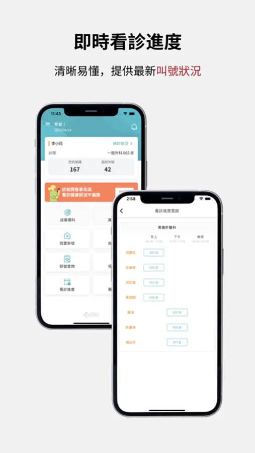 【看診進度】 即時查詢看診進度,隨時隨地掌握看診資訊。