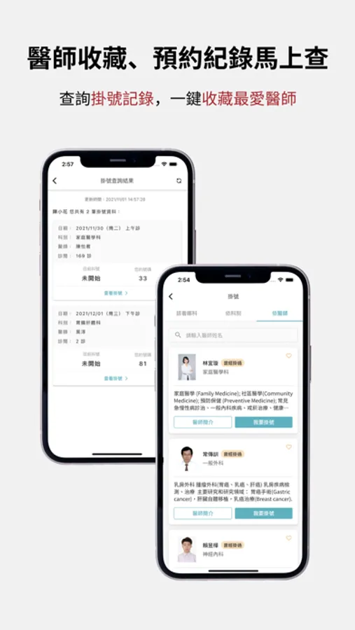 【收藏功能】 透過掛號記錄查詢,方便再次預約相同醫生,亦可關注收藏該醫生,方便日後快速掛號。