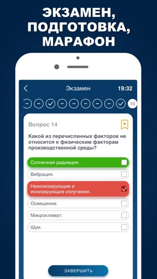 ► Режим марафона - прохождение тестирования по всем вопросам или определенной части вопросов.