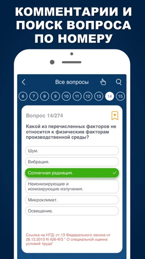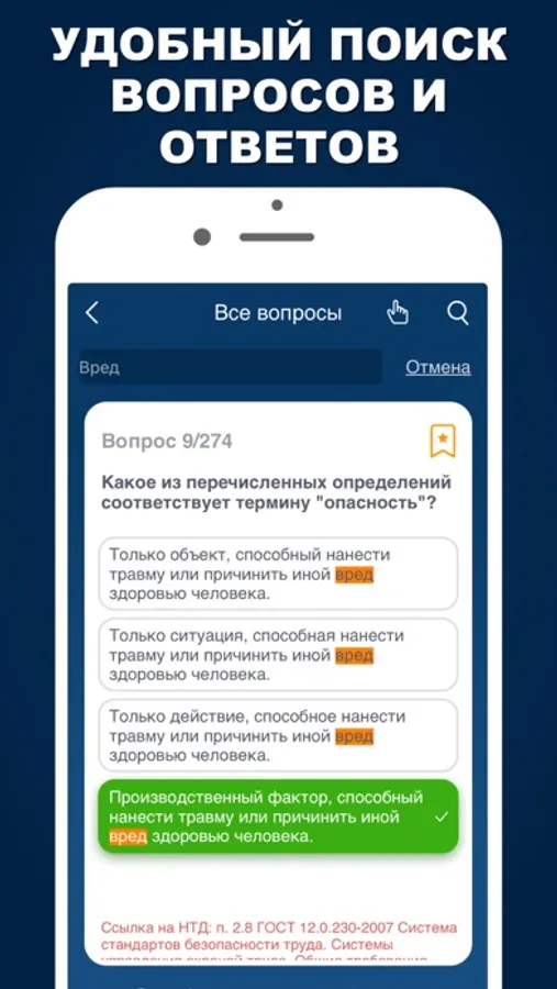 ► Поиск по номеру вопроса или по тексту вопроса в режиме Обучения.