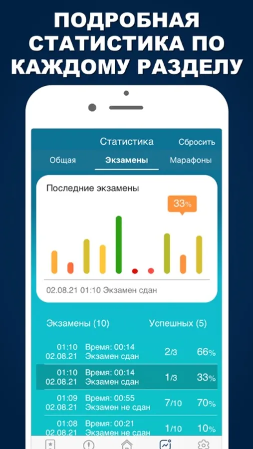 ► Статистика - статистика по всем изученным вопросам, а также по всем пройденным Экзаменам и Марафонам.