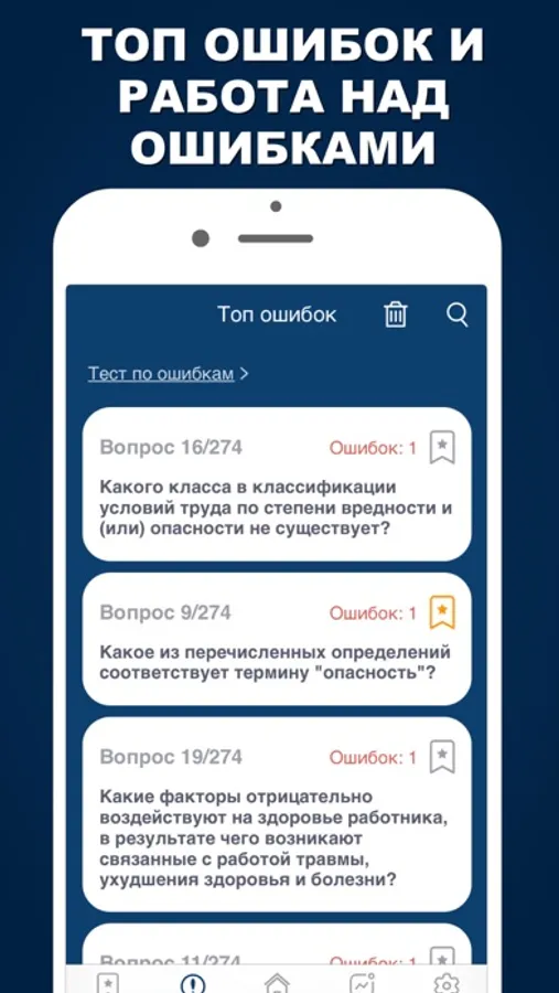 ► Топ ошибок - вопросы, в которых были допущены ошибки.