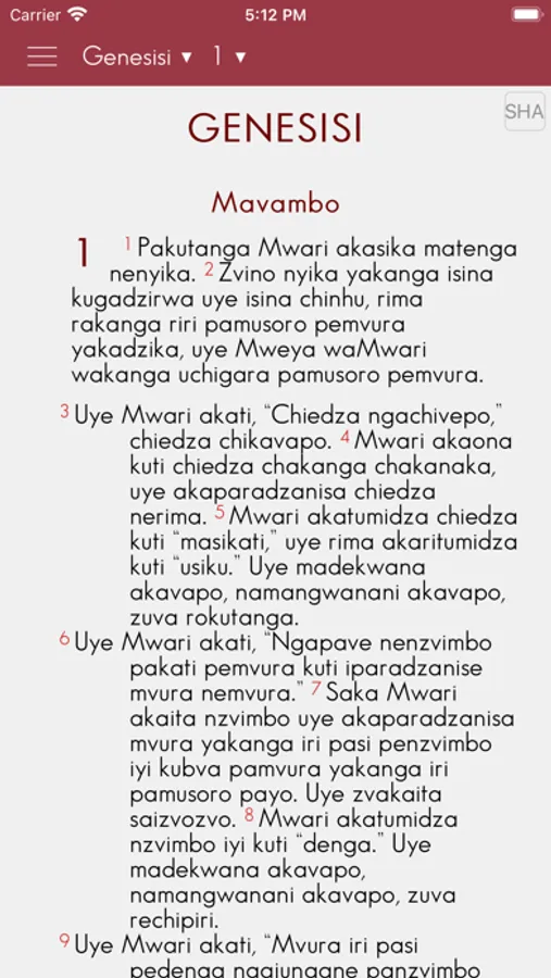 Biblica New International Version in English that can be read side-by-side or verse-by-verse with the Shona Translation.
