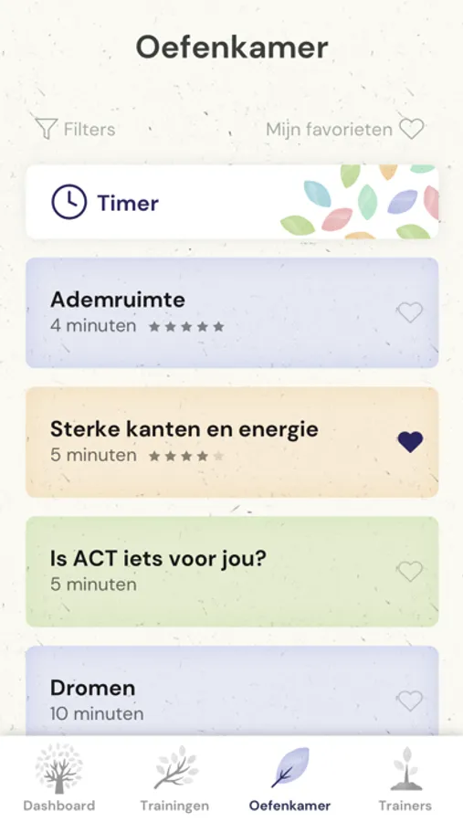 Wil je meer voldoening halen uit je dag, maak dan gebruik van ‘de oefenkamer’. De oefenkamer staat boordevol met meditaties en oefeningen rondom mindfulness, positieve psychologie, ACT en compassie.