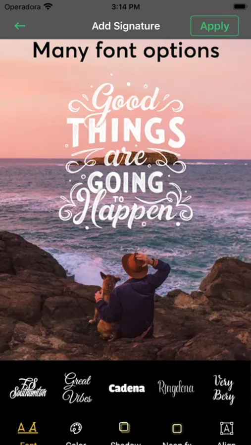 Ezy Word Swag saves you tons of work by automatically creating complex text layouts with different fonts and typefaces. By just a few taps, you instantly get your text beautifully laid out on a background of your choice. This would take hours if you were using Photoshop or a similar photo editor. (The text designs are not templates and they are generated randomly as you choose different styles).