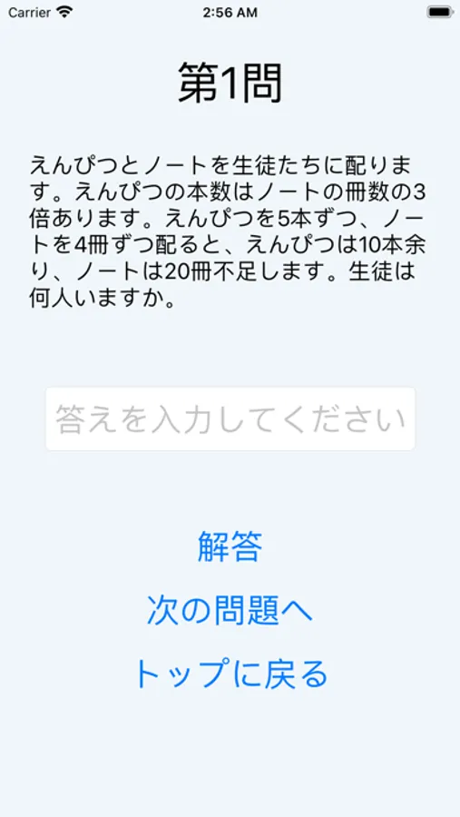 中学受験対策の算数の問題が自動で表示され、解答も表示されるアプリです。主に小学5、6年生を対象に作られており中学受験に必要な問題を解くことが可能になっております。