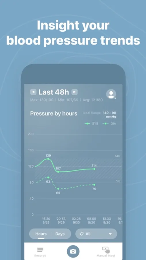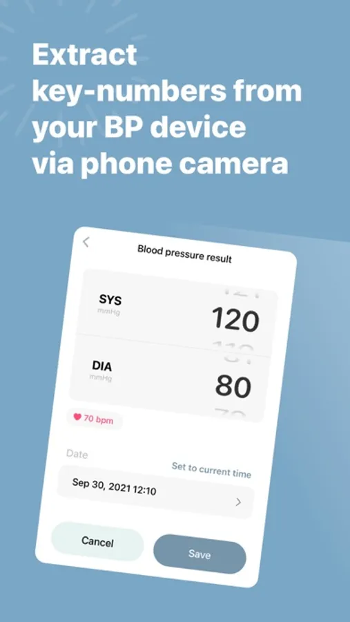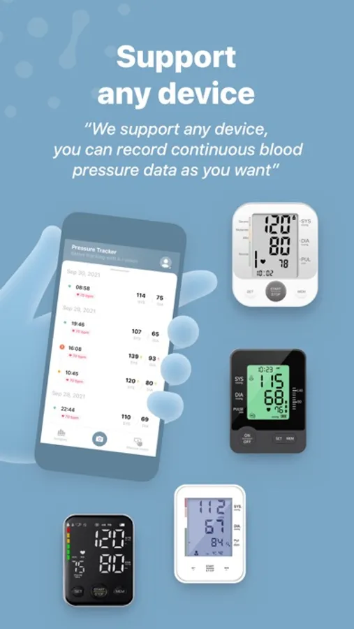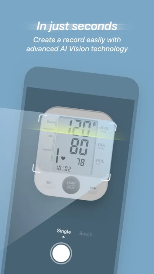 - Quick scan your blood pressure results into numbers and record them automatically.