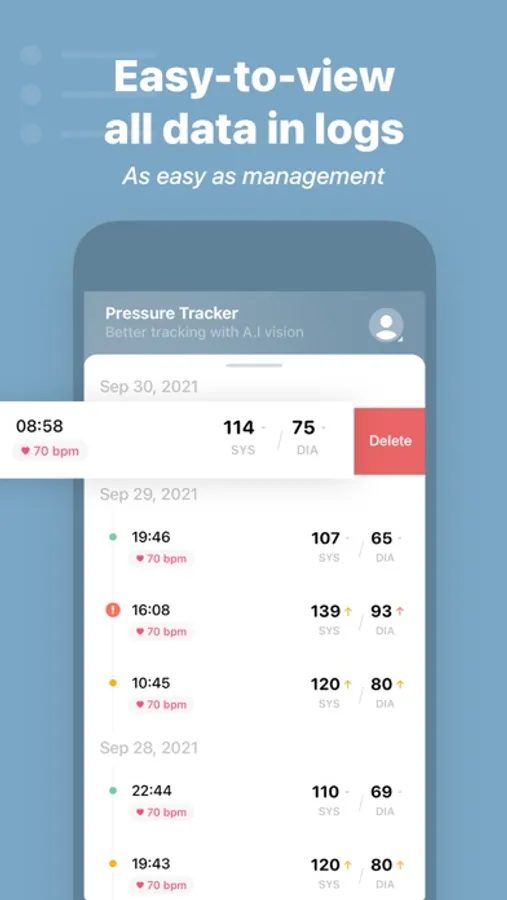 Our app is a blood pressure management app that helps you to record, track, analyze and share your Blood Pressure result. We take full advantage of advanced AI recognition technology to help you easily record and share your blood pressure result.
