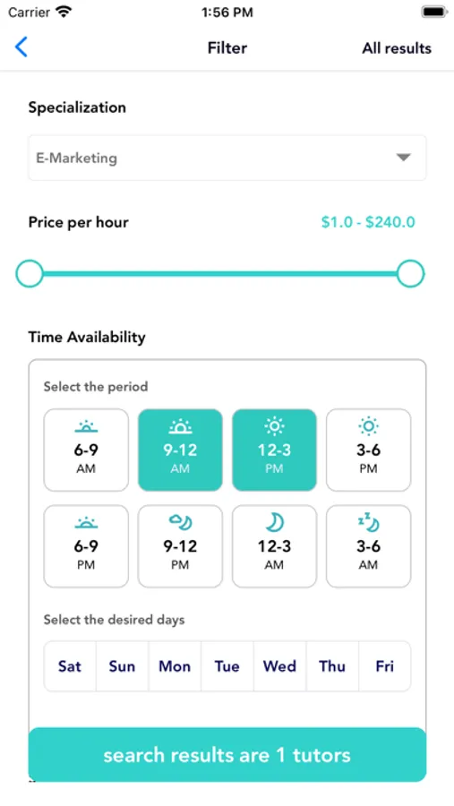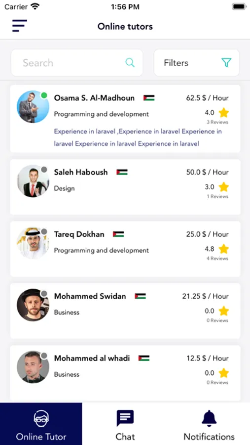 - Searching for teachers in a specific discipline in general (for example: English language, programming, or Java programming).