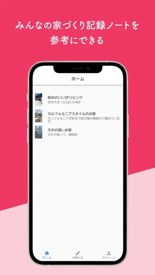 ・他のユーザーの注文住宅の家づくり記録ノートが見れる機能