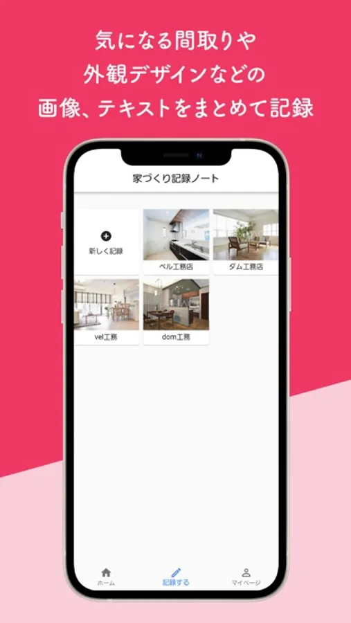 住宅メーカーのホームページやSNS、ブログなどたくさんある注文住宅の情報をアプリ1つで簡単に管理することができ、あの玄関の画像どこに置いたっけ?床材の名前何だったけ?などの悩みが解消できるツールです