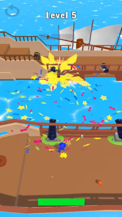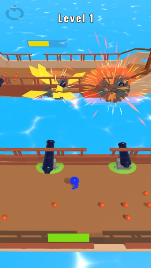 Fire cannonballs and sink other ships. Competitive arcade and strategy game.
