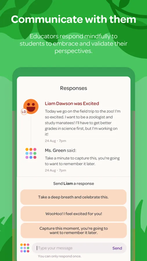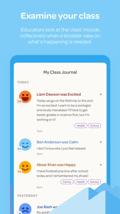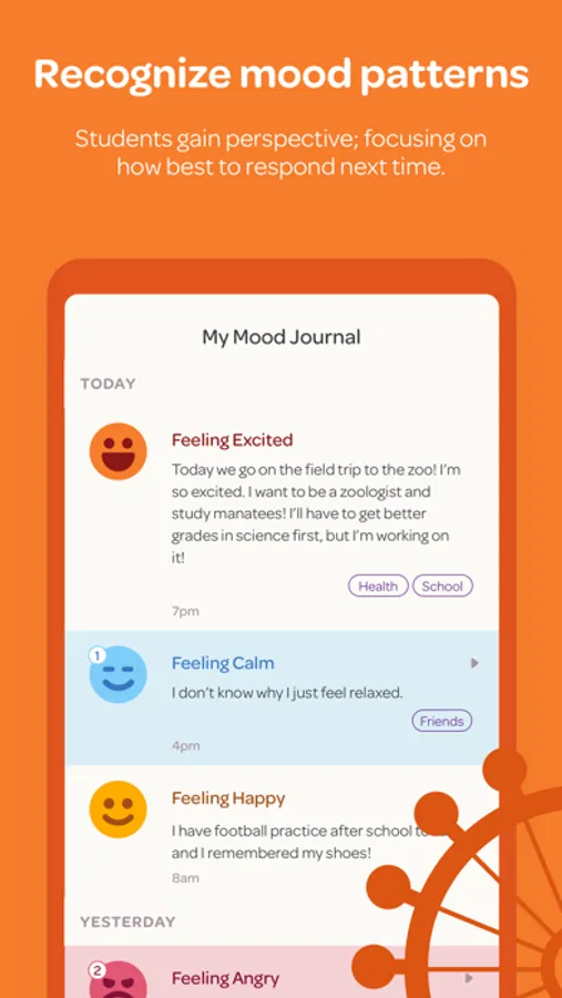 By using research-based mood tracking, students learn how to pause, reflect, problem solve and share their feelings.
