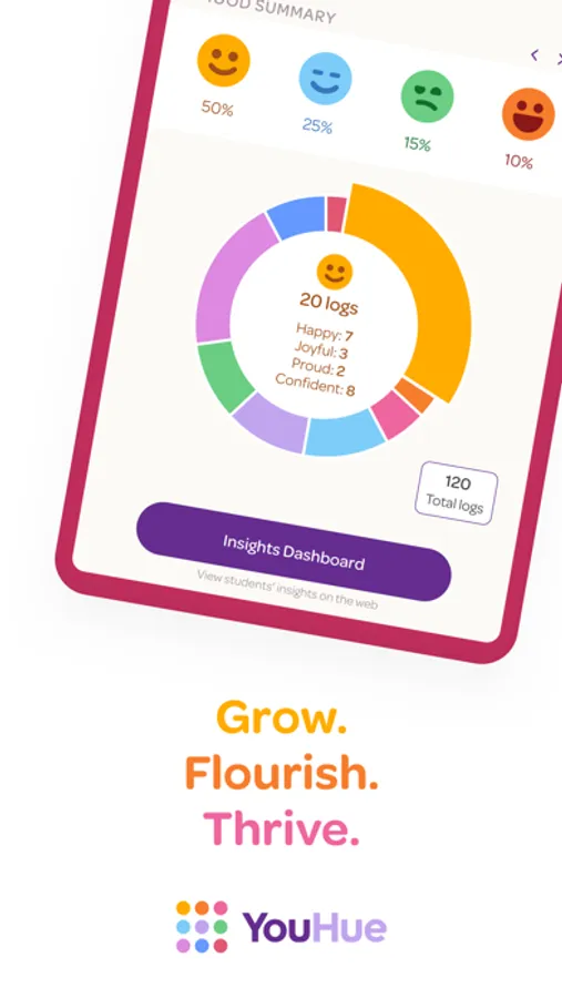 YouHue gives educators regular insights into how students are feeling today, and over time about their learning and themselves.