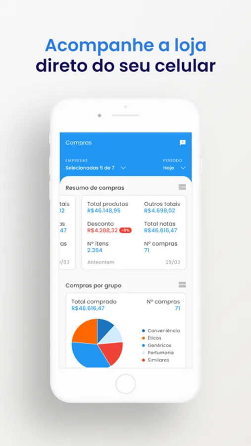 O Visão Farma é um facilitador para o dono de farmácia! Com ele é possível acompanhar os indicadores de Vendas, Compras e Financeiro pelo celular.