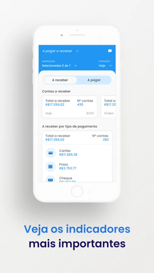 Saiba quais são os totais a pagar, número de contas e veja em detalhes o tipo de pagamento, por dinheiro, cartão, a prazo ou cheque. Dessa forma você tem uma melhor previsibilidade de recebimentos da sua loja.