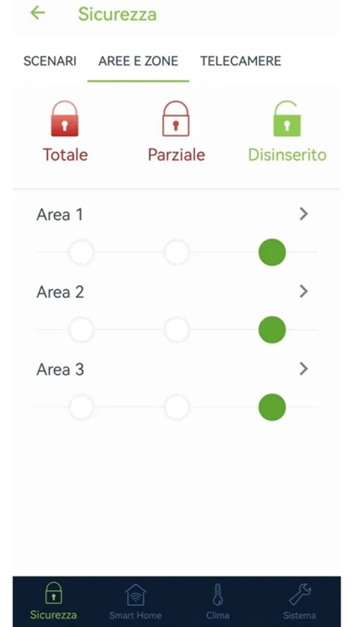 COMBIMAX EVOLUTION SMART supporta tutte le dimensioni dei display, ha un’interfaccia con icone, semplice e intuitiva. Le funzioni disponibili sono complete: con pochi tocchi hai la possibilità di inserire, disinserire o parzializzare l’impianto antintrusione, accedere agli scenari, verificare lo stato di sensori, comandi attivati ed eventuali guasti del sistema, leggere il registro eventi; puoi azionare condizionatori, irrigatori, luci e molto altro.